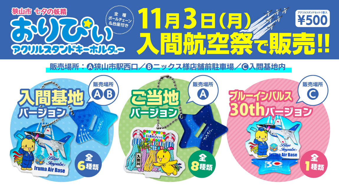 11月3日(月・祝)に入間基地で開催される、入間航空祭に合わせて、おりぴぃアクリルスタンドキーホルダーを販売いたします!