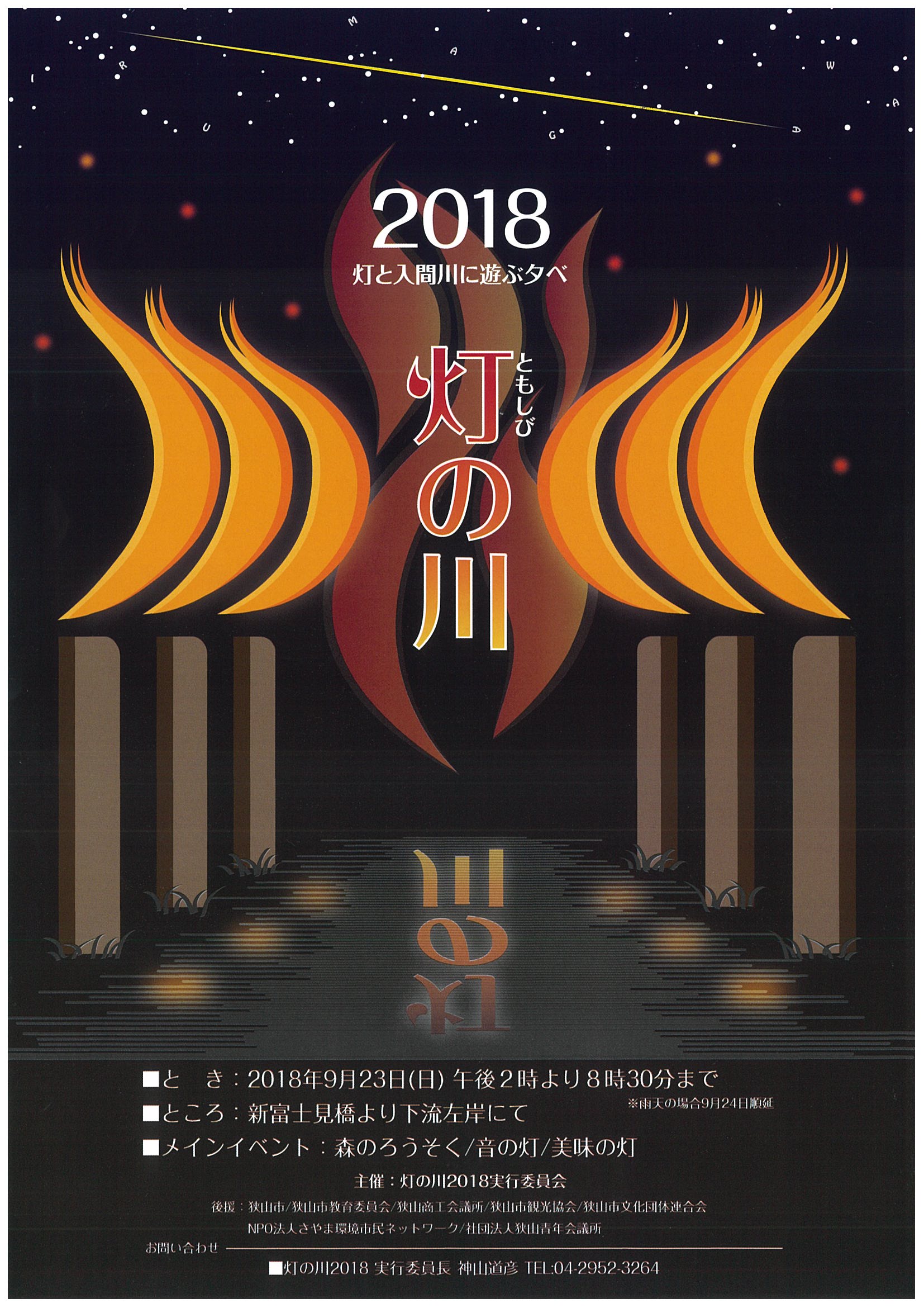 開催日時:平成30年9月23日(日)午後2時から午後8時30分まで (雨天の場合は24日(月)へ順延) 開催場所:新富士見橋より下流左岸側